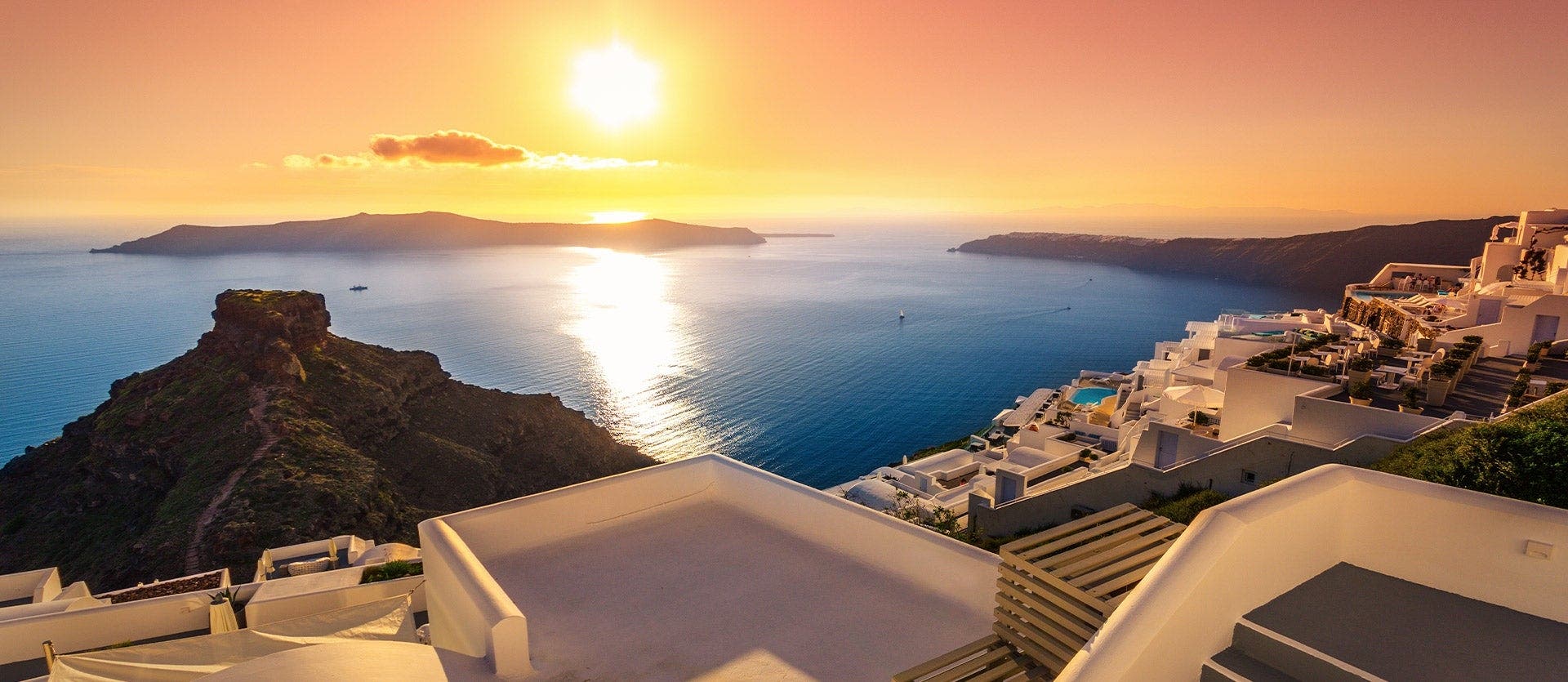 Desayuno en el hotel. Aprovecha para descansar o explorar a tu ritmo durante la mañana. Por la tarde caminaremos hasta la cima del majestuoso volcán y disfrutaremos de vistas impresionantes. Después podremos nadar en las aguas termales terapéuticas y, al atardecer, navegaremos y fondeamos cerca de la bahía de Thirasia para disfrutar de una deliciosa cena griega. Continuaremos hacia Oia para contemplar una espectacular puesta de sol y finalizaremos la velada con una animada fiesta en el barco mientras aprendemos el tradicional baile del Sirtaki. Alojamiento en Santorini.